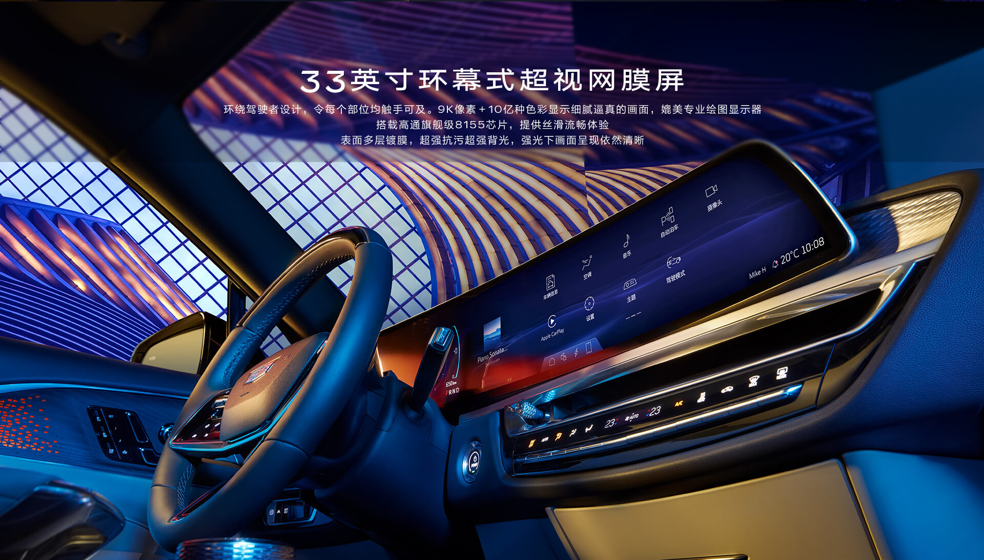 锐歌初次在凯迪拉克国产车型中换装了最新中控造型,主体是一块33英寸环幕式9K中控屏幕,从左边一向延伸到仪表盘中心,一起搭载了新一代VCS智能虚拟座舱,装备5G网络和8155车载芯片。新车将标配19扬声器音响、26色气氛灯、手机钥匙、前排座椅加热通风按摩、Super Cruise超级辅佐驾驭体系、DMS驾驭员检测体系。长续航显贵版和四驱高性能显贵版还将供给双片式电动穹顶,三区空调、后排座椅加热以及Nappa真皮座椅等。