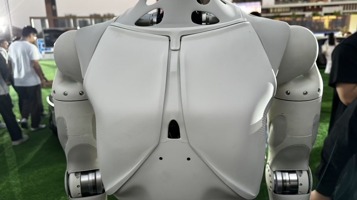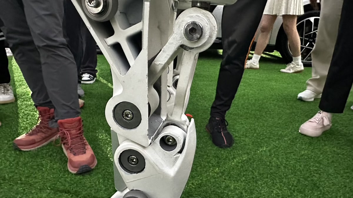 这个方位是小鹏AI机器人IRON 工程版的腰部关节,能够看到最重要的力气部位。一般腰部力气也是人类的中心力气地点,这个部分的金属关节也投射出厚重感。
