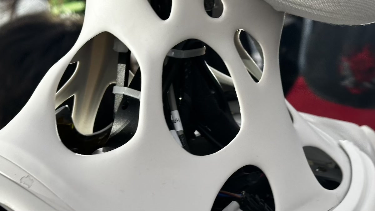 再来看头部和颈部的规划。颈部看过去能够看到显着的线缆,这是首要的数据传输和电力线。