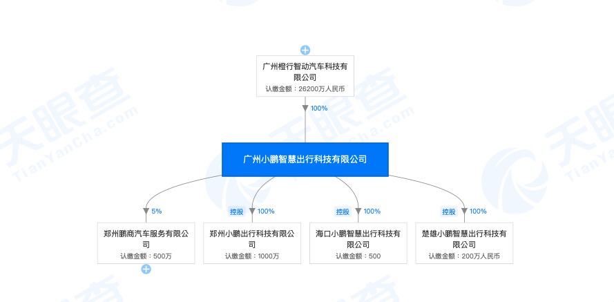 新增对外出资:楚雄小鹏才智出行科技有限公司。新公司由广州小鹏才智出行科技有限公司 100% 持股,注册资本 200 万元,法定代表人为朱艳华,运营范围内包括网约车客运服务;轿车导航系统装置;票务服务;轿车、二手车、轿车充电模块、轿车充电桩等。